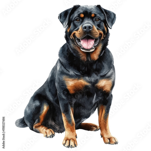 Rottweiler full body watercolor isolated transparent background
