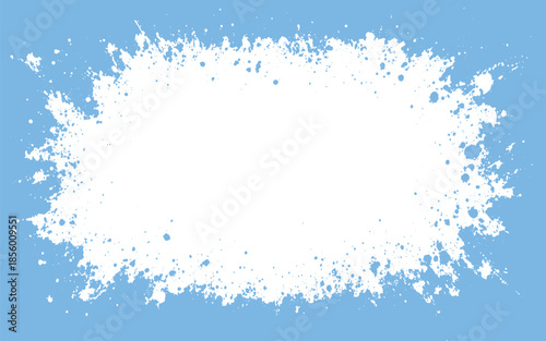 Rough Blue Grunge Border Frame Texture with Irregular Edges on White Surface.
