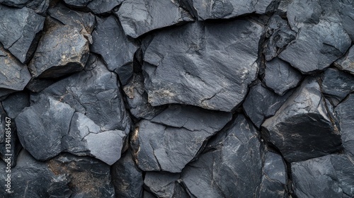 rough textured slate rocks tightly stacked forming natural abstract stone background with copy space. geological and nature concept. ?racked mountain surface closeup.