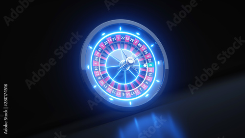 Roulette Wheel Concept Design. Online Casino Gambling Roulette 3D Realistic With Neon Lights - 3D Illustration