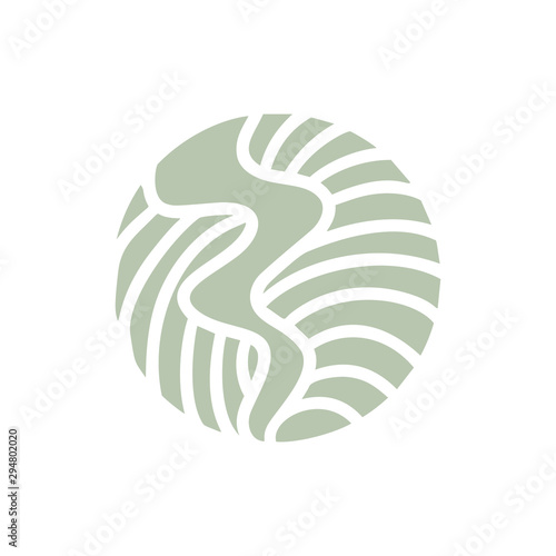 Round bio emblem in a circle linear style. Vector abstract road logo. Badge for design of travel products, tourism concept. Illustration icon