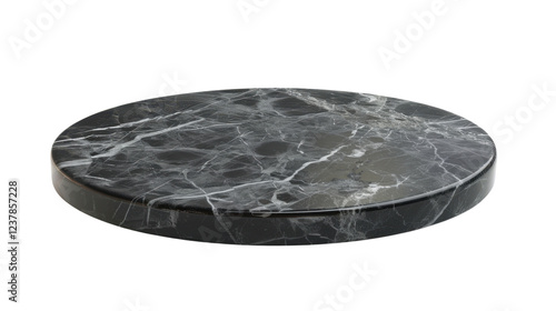 Round black marble podium on transparent background for product placement
