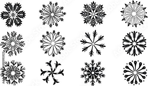 Round Decorative Motif Collection with Intricate Black and White Shapes in Detailed Pattern Set