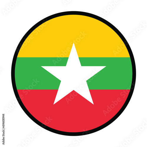 Round Myanmar flag, flat vector logo icon. Simple vector button flag of Myanmar.