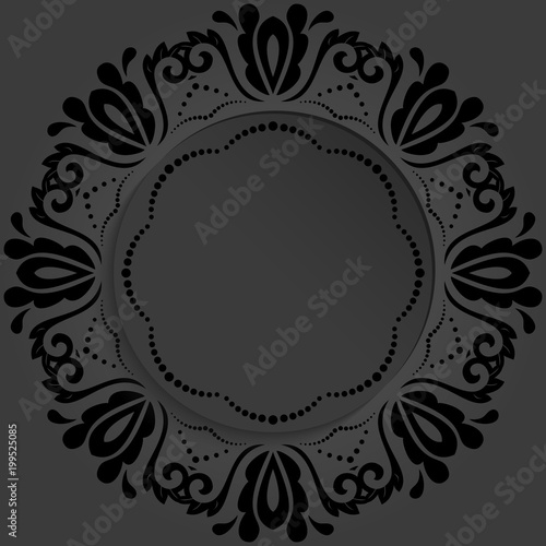 Round vector frame with floral elements and arabesques. Dark pattern with arabesques