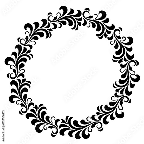 Round vintage frame with ornate swirls and decorative flourishes. Classic baroque circular border.