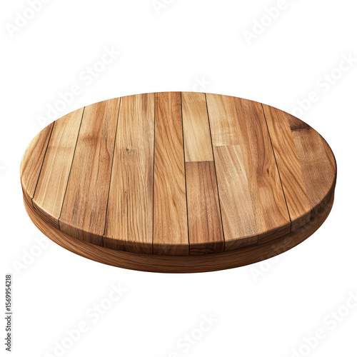 Round wooden platform with visible grain texture and layered base isolated on transparent background