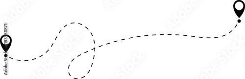 Route icon - two points with dotted path and location pin. Route location icon two pin sign and dotted line.