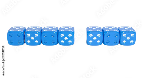 Row Of Blue Dice With Cloud Patterns On Black Background