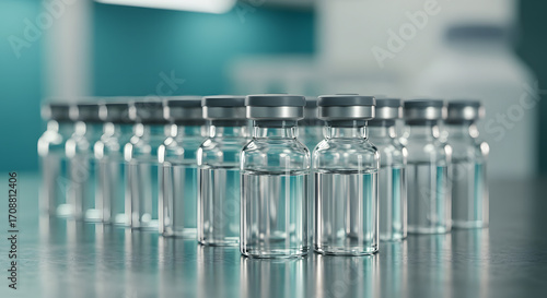Rows of Pharmaceutical Vials Vaccine Production, Medical Research and Healthcare