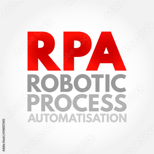 RPA Robotic Process Automatisation - form of business process automation technology based on metaphorical software robots or on artificial intelligence, acronym text concept background