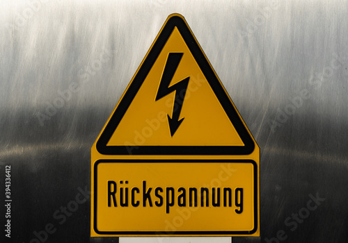 Rückspannung Warnschild