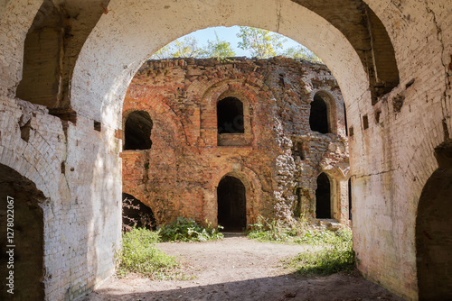 Ruined defensive buildings of brick on old fortress territory