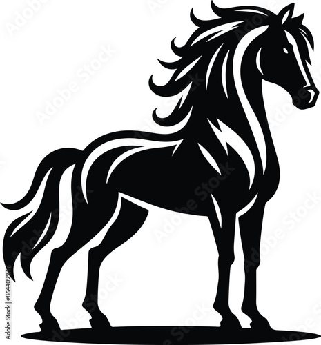 Running horse black silhouette. Vector illustration.