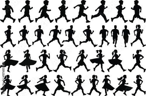 Running silhouette vectors. Runner silhouettes set vector illustrations.