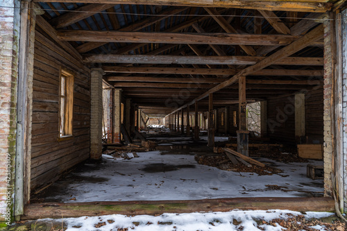 Russia. St. Petersburg, March 14, 2021. Abandoned storage facilities on the site of the former military arsenal in Kronstadt.