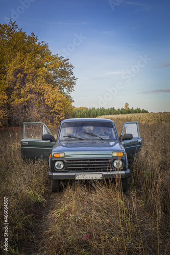 Russian SUV in autumn in nature