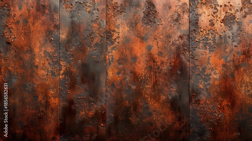 Rusted metal plate texture with dark brown and orange corrosion for industrial grunge backgrounds.