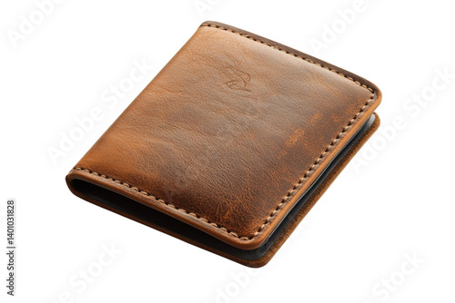 Rustic Brown Leather Wallet Handcrafted Style Distressed Texture Dark on transparent background