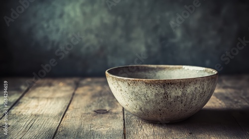 Rustic Ceramic Bowl on Wooden Table Background with Textured Surface