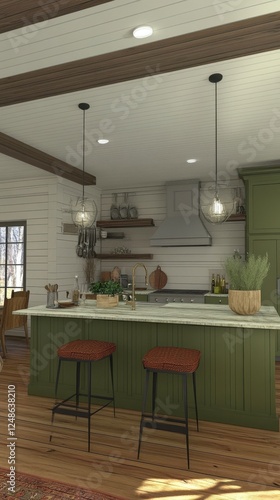 Rustic Farmhouse Kitchen Design with Warm Lighting and Open Concept