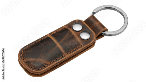 Rustic leather keychain with metal ring, perfect for car or house keys