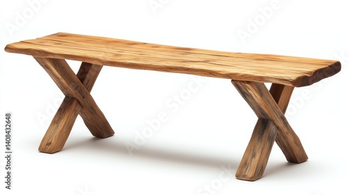 Rustic Wooden Bench with Crossed Legs Ideal for Home Decor Furniture Photography and Interio