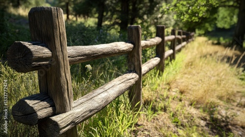Rustic Wooden Fence Along a Lush Green Pathway in Nature