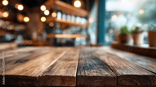 Rustic Wooden Kitchen Table With Cozy Interior Featuring Warm Light Bokeh