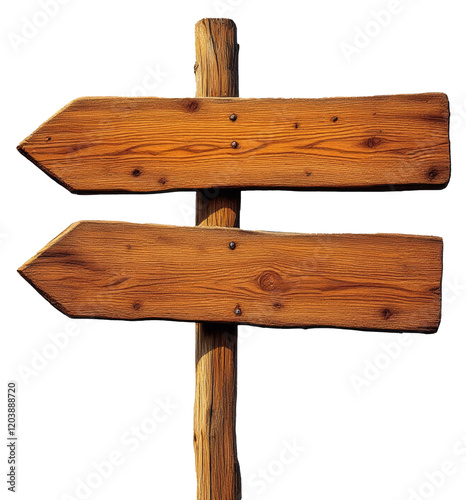 Rustic wooden signpost with two blank directional arrows