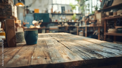 Rustic Wooden Table in a Cozy Workshop Setting