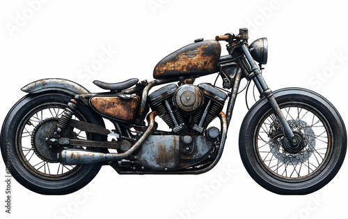 Rusty chopper motorcycle studio shot, isolated