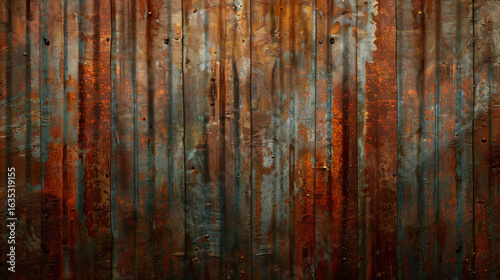 Rusty metal surface with textured appearance, featuring shades of orange, brown, and blue. weathered look adds character and depth, perfect for backgrounds or artistic projects