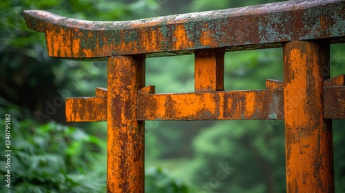 Rusty Orange Torii Gate in Lush Green Forest