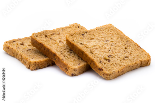 Rye bread slice on a white background.
