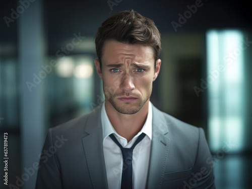 Sad and depressed young businessman