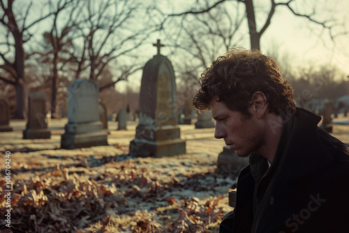 Sad bury ceremony at old cemetery church funeral farewell RIP generative AI picture