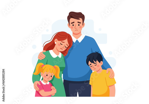 Sad family of four, perfect for parenting, family counseling, therapy, depression, mental health, or familyfocused content creators.