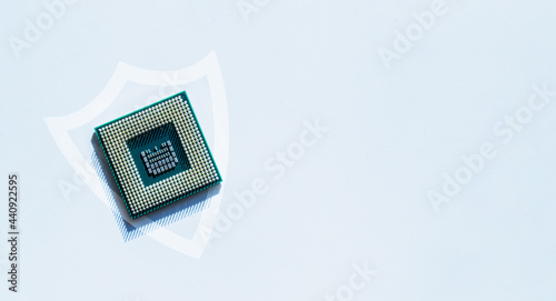 Safety computer. Network digital security technology with computer processor chip on white background. Internet data privacy, cybersecurity protection concept.