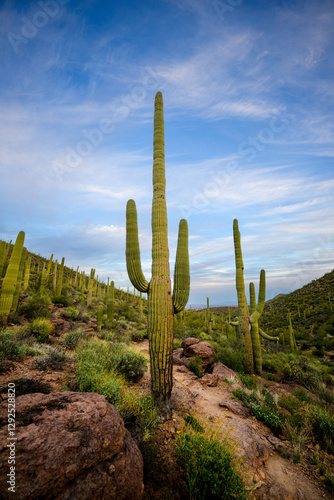 saguaro cactus in arizona blue sky and soft clouds