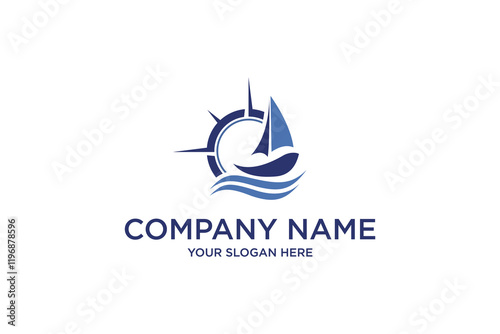 Sailing Boat with Compass and Waves Symbol Graphic Design