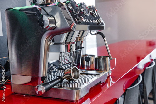 Saint Petersburg, Russia - 6 Apr 2025: Beautiful metal coffee machine in the kitchen