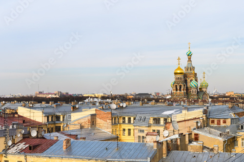 Saint Petersburg, view from roof at the Church of the Savior on Blood, amid the many rooftops of other houses
