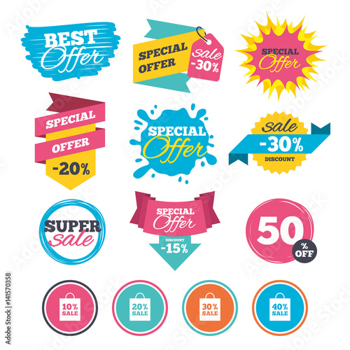 Sale bag tag icons. Discount symbols.