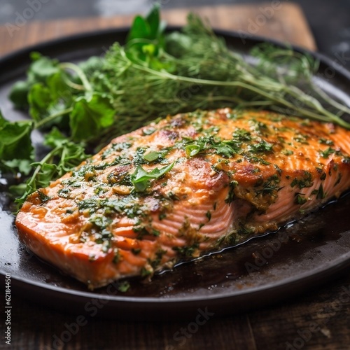 Salmon steak with herbs generative ai