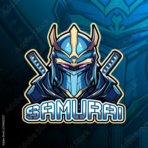Samurai with katana sword mascot logo design vector for badge, emblem, esport and t-shirt printing