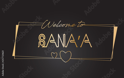 Sana’a Welcome to Golden text Neon Lettering Typography Vector Illustration.