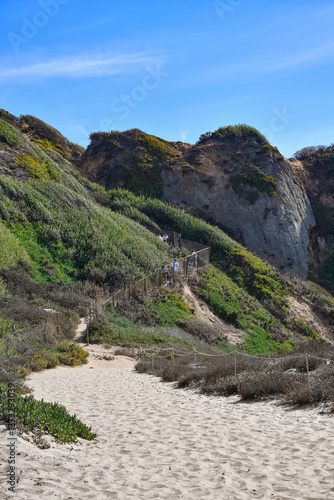 Sandy trail leading up to Point Dume State Beach Nature Preserve in Malibu, California.