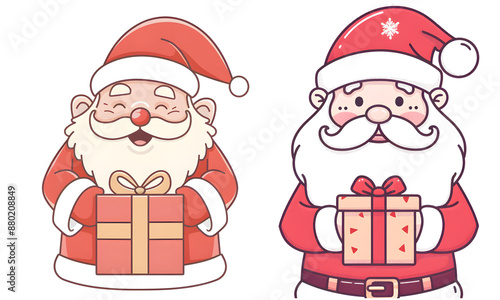 Santa Claus holding gift box, cut out, clipart, sticker.