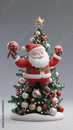 Santa Claus with Christmas tree, festive atmosphere